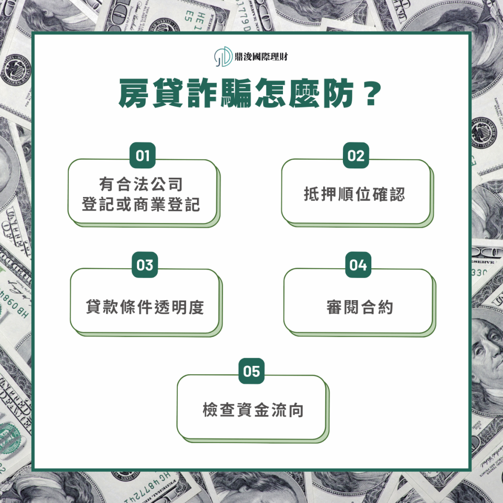 要有效預防房屋二胎詐騙,關鍵在於借款人必須提高警覺,在接觸貸款機構時,建議檢查以下 5 點是否都有符合: